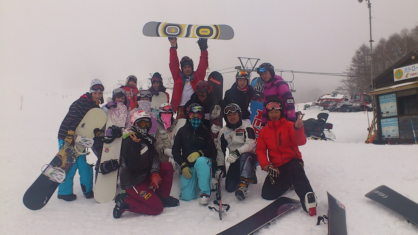 1/21(土)、22(日)に今シーズン2回目になる東京海上日動スノーボード部の合宿が開催されました(。・ω・。)ノ 先日の1回目よませ温泉スキー場から菅平高原スキー場ツバクロゲレンデにトレーニングフィールドを移し、カッチカッチなバーンでの練習を予定していましたが・・・。 まさかまさかの大雪! 積雪は木曜日の夜から降り続き、50cm以上。恵みの雪と言いたいところでしたが、なんでこのタイミング?!(笑) しかし、やっぱり菅平!下地はカッチカッチ! 今回は雪質が刻一刻と変化する過酷なトレーニングになりましたが、皆さんの滑りを見させていただいて着実に成果が出ていることが見受けられましたヽ(。・ω・)ノ この波に乗り3月の大会総合優勝を目指して頑張りましょー! 1万円ヒラヒラ効果?! 今回の合宿で男性人に引けを取らないタイムを叩き出していた西野さんの奥さん、美紀さんです。そして旦那さんの好タイムで競技者魂に火が付いた私(笑)。コーチをやらせていただいているのに、もうヒヤヒヤです(汗)。